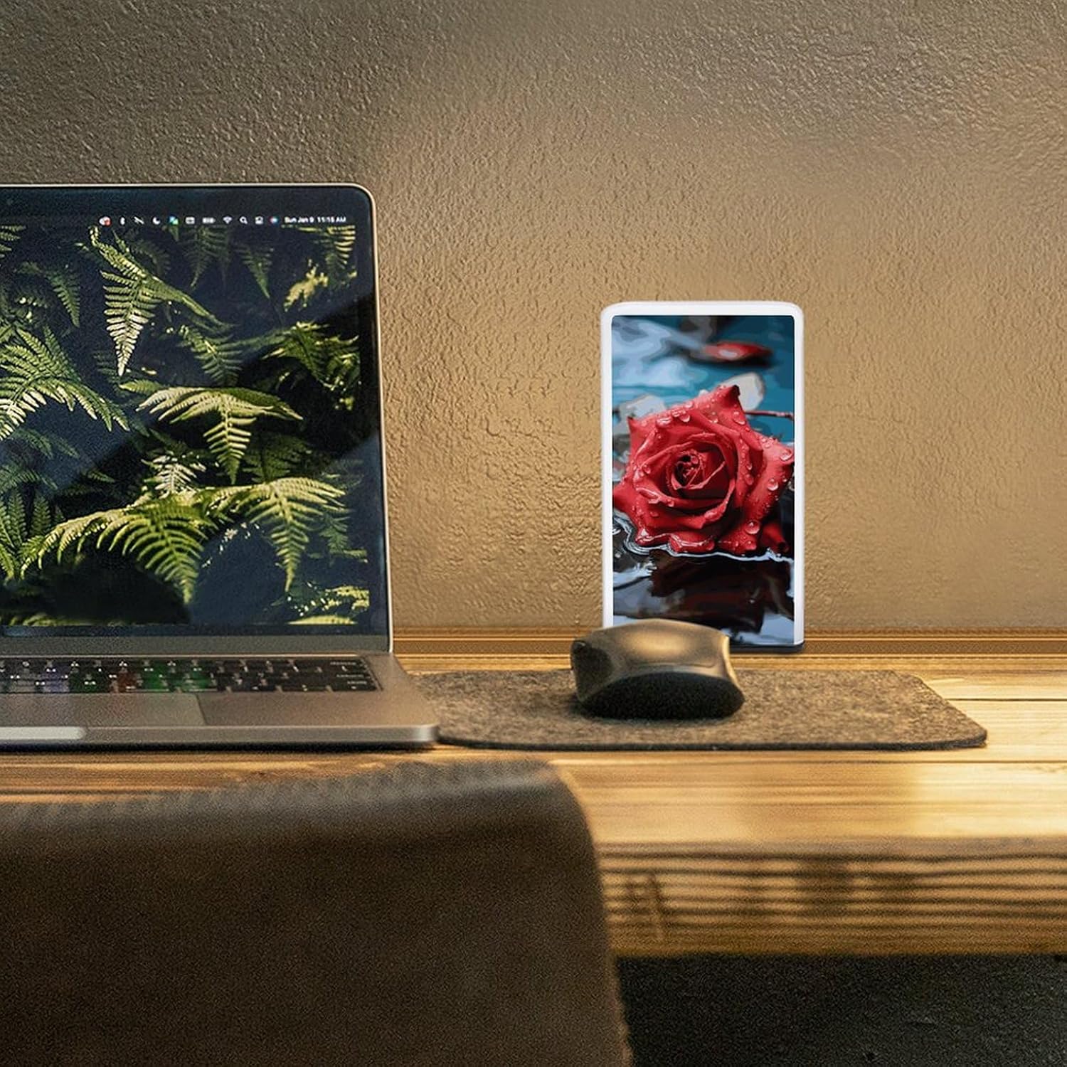 Made of durable plastic, this Red Rose in Water printed small bedside table is a must-have for modern living. It features dual brightness adjustment. When you stay up late reading in your study, switch to the high setting for crisp, bright light. In the bedroom, the low setting provides a soft glow to guide you on your nighttime errands without disturbing your sleeping partnerThis mini lamp has uses beyond the home. In bars and cafes, its warm, inviting light creates a welcoming atmosphere that keeps customers coming back for more. In the kitchen, it provides the lighting for a late-night snack, and on your desk, it ensures you have light while you work or studyDesigned with portability in mind, this cordless lamp is easy to move with its lightweight construction and battery operation. Whether you're rearranging your living room, working in the garden, or traveling, it'll light your way. Simply load up with 3 AAA batteries (not included) and you're ready to goNot only is it powerful, its sleek design makes it a stylish addition to any room. It blends in with a variety of home decor, serving as both a lighting source and an elegant decorative pieceThis table lamp is an ideal gift. Its classic long shape and practical functions make it a great gift for friends and family on birthdays, holidays or any special occasions
