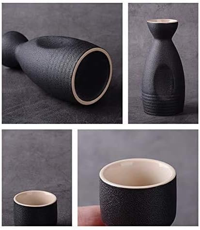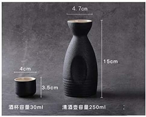 specification:Material: PorcelainStyle: Japanese and KoreanColour: BlackSake set with 6 small round cupsSake pot height: 15cm, caliber: 4.7cmSmall wine glass: 3.5cm high, 4cm diametercapacity:Sake pot: 250ml (about half a catty)Small wine glass: 25 ml (5 money)Set includes 1 sake server and 6 cupsYou could Add hot water and Easy to warm Sake in WINTER. You could Add Ice Cube and Easy to Cool Sake in SUMMER.