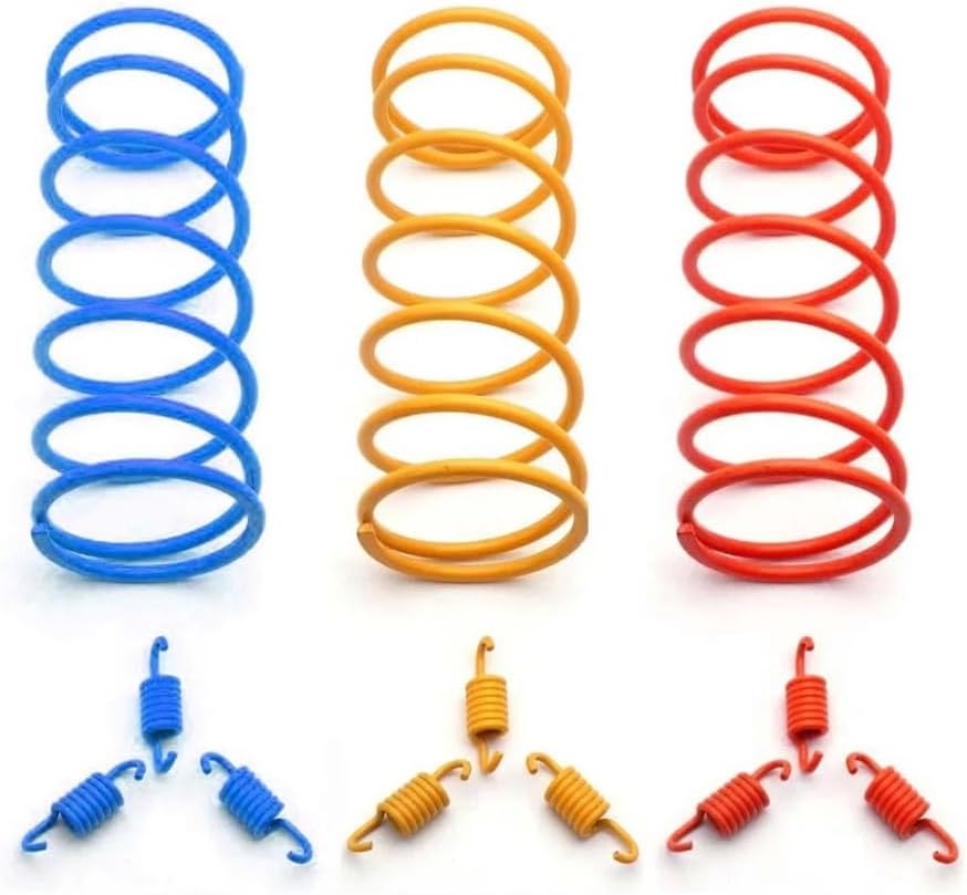 Compatible with Clutch & AccessoriesCompatible with GY6 125 Clutch SpringOrdering instructions:---1000rpm Big Spring=1 piece 1000rpm Big Torque Spring---1500rpm Big Spring=1piece 1500rpm Big Torque Spring---2000rpm Big Spring=1 piece 2000rpm Big Torque Spring---1000rpm Small Springs=3 pieces 1000rpm Small Clutch Springs---1500rpm Small Springs=3 pieces 1500rpm Big Clutch Springs---2000rpm Small Springs =3 pieces 1500rpm Big Clutch Springs---1000rpm Springs Set=1 piece 1000rpm Big Torque Spring+3 pieces 1000rpm Small Clutch Springs---1500rpm Springs Set=1piece 1500rpm Big Torque Spring+3 pieces 1500rpm Big Clutch Springs---2000rpm Springs Set=1 piece 2000rpm Big Torque Spring+=3 pieces 1500rpm Big Clutch SpringsProduct specifications>>>Big torque spring:Length: Approx. 150~152mmOuter Diameter: Approx. 58mmInner Diameter: approx. 49mm~50mmSpring Thickness:1000RPM (Blue) 4.2mm;1500RPM (Yellow) 4.4mm;2000RPM (Red) 4.65mm>>>Small Clutch springs:1000RPM (Blue):Overall Length: approx. 36.6mmOuter Diameter: approx. 11mmSpring thickness: approx. 2.2mm1500RPM (Yellow):Overall Length: approx. 35.6mmOuter Diameter: approx. 11mmSpring thickness: approx. 2.25mm2000RPM (Red):Overall Length: approx. 36.5mmOuter Diameter: approx. 12mmSpring thickness: approx. 2.4mmPackaging quantity:1set