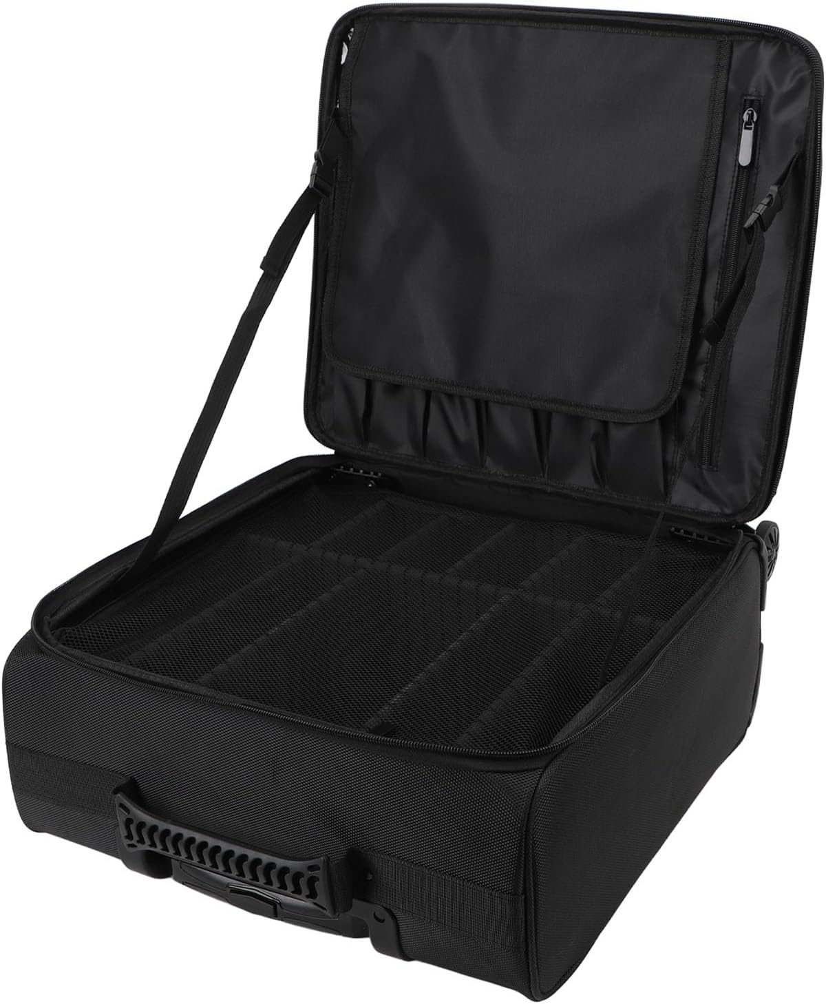 1. INCREASED GRIP: Professional makeup case features a soft rubber design with unique textures to enhance grip and prevent slipping, adding an extra level of safety to your makeup transport. 2. SAFETY STORAGE: The interior of our case is equipped with shock resistant, detachable dividers, effectively protecting your individual makeup items from damage during transit. 3. SILENT WHEELS: The case utilizes dual row silent universal wheels for flexible steering. These wheels also boast advantages such as wear and pressure enhancing longevity and performance. 4. DETACHABLE STRAPS: For added convenience, the secure straps within our case are designed with buckles, making them easy to detach and making the case applicable to different scenarios. 5. VERSATILE USAGE: Suitable for makeup artists, manicurists, eyebrow embroiderers, and daily storage needs, bringing more practical convenience to your travels. Spec: Item Type: Makeup Trolley Bag Color: Black Material: Oxford fabric, aluminum alloy pull rod Application: Makeup artist, nail technician, eyebrow embroider, daily storage Package List: 1 x Makeup Case