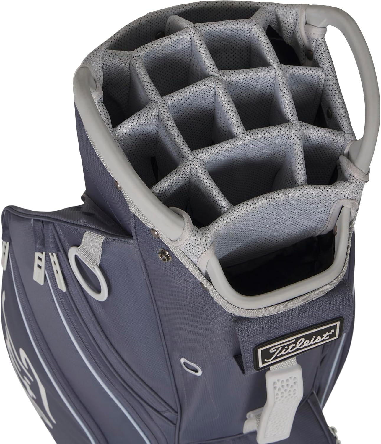 The Cart 14 Bag includes a lightweight, symmetrical design with 10 cart-accessible pockets for improved storage and convenience on the golf course.